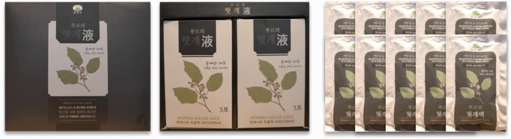 맑은산의 대표상품 [푸르뫼 헛개액]은 지리산에서 천연 비료를 활용하여 재배한 국내산 무농약 헛개를 원료로 사용하여, 경상대학교 의과대학과 맑은산의 연구협력을 통해 완성된 특허 제조법을 통해 발효제조됩니다. 특허로 인증받은 맑은산의 제조기술을 통해 [푸르뫼 헛개액]은 항산화 성분으로도 잘 알려진 플라보노이드 및 폴리페놀 화합물 함량이 대폭 증진되었으며, 뛰어난 맛과 향취 그리고 효능으로 여러분을 찾아뵙게 되었습니다 !
