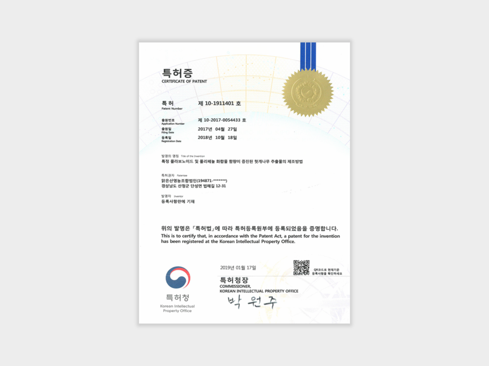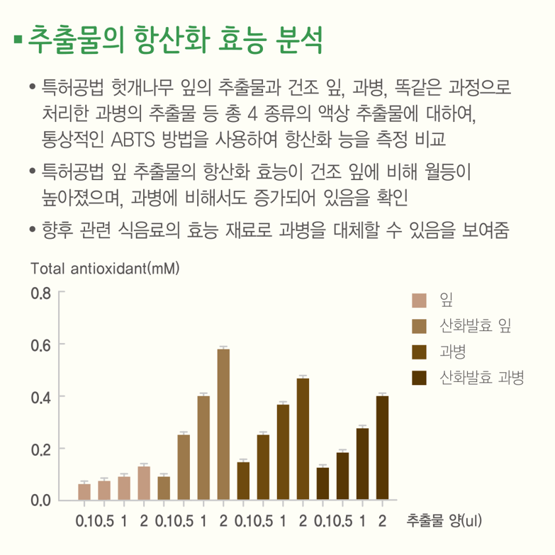 플라보노이드 및 폴리페놀 화합물 등 항산화 성분 함량이 대폭 증진되었습니다.